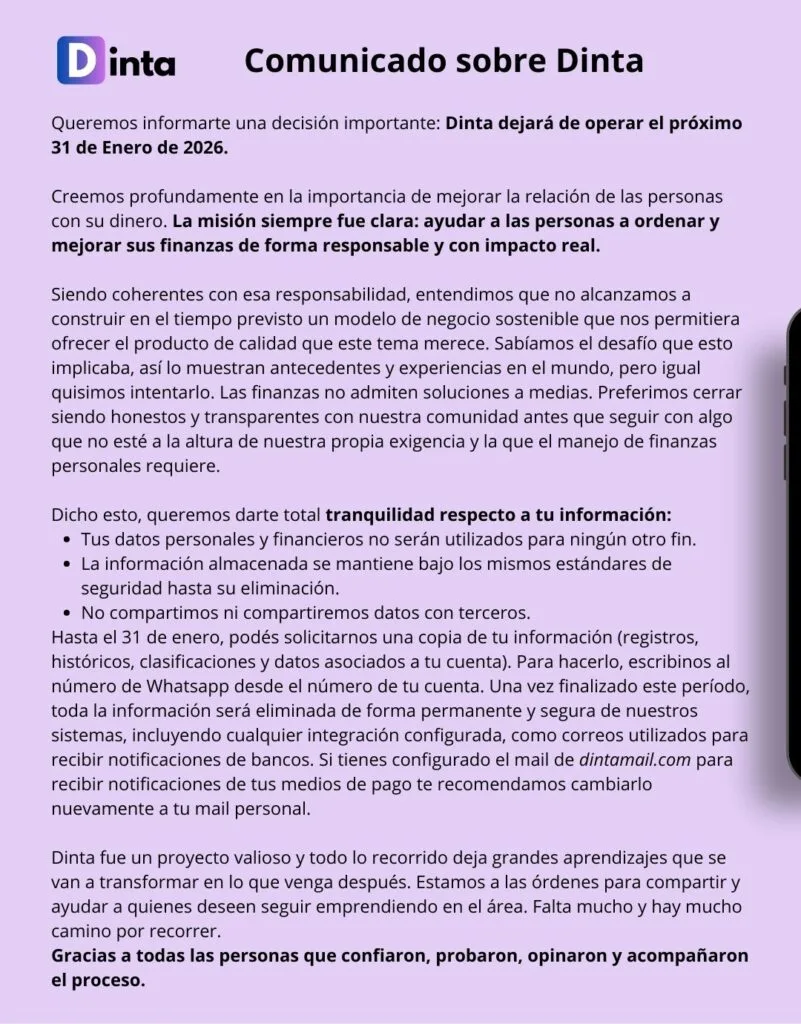 📩 Usá tu mail privado Dinta para recibir notificaciones de móvimientos y estados de cuenta y ¡listo!